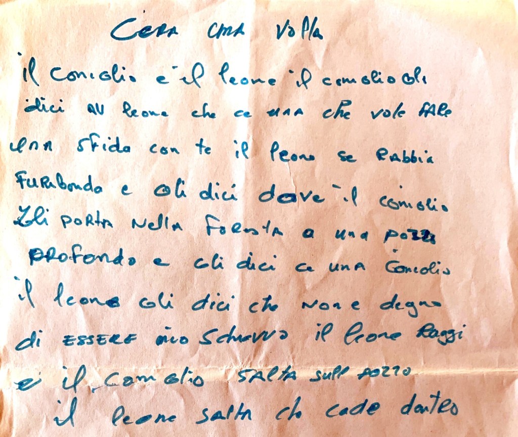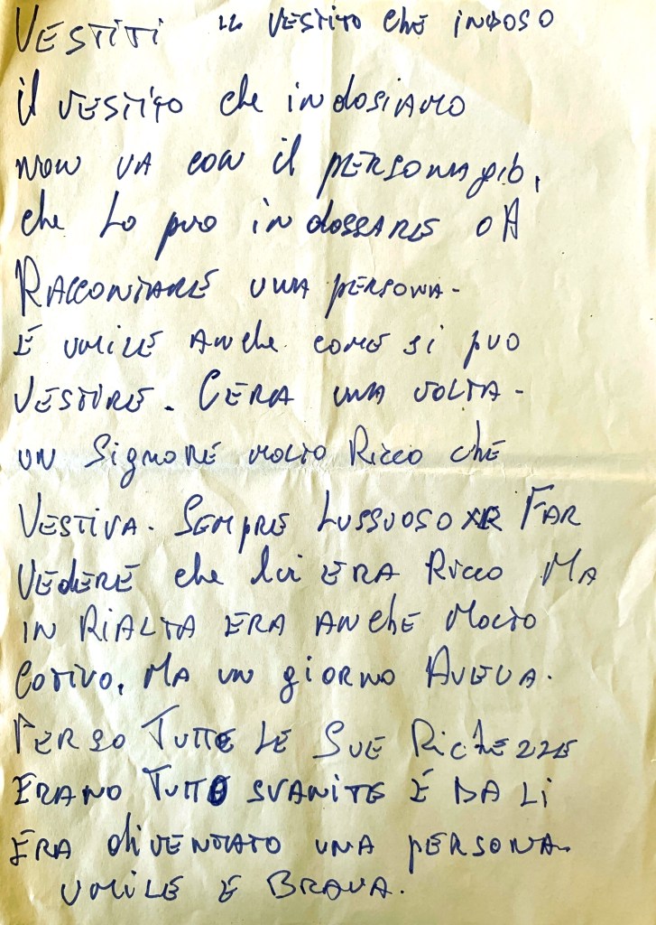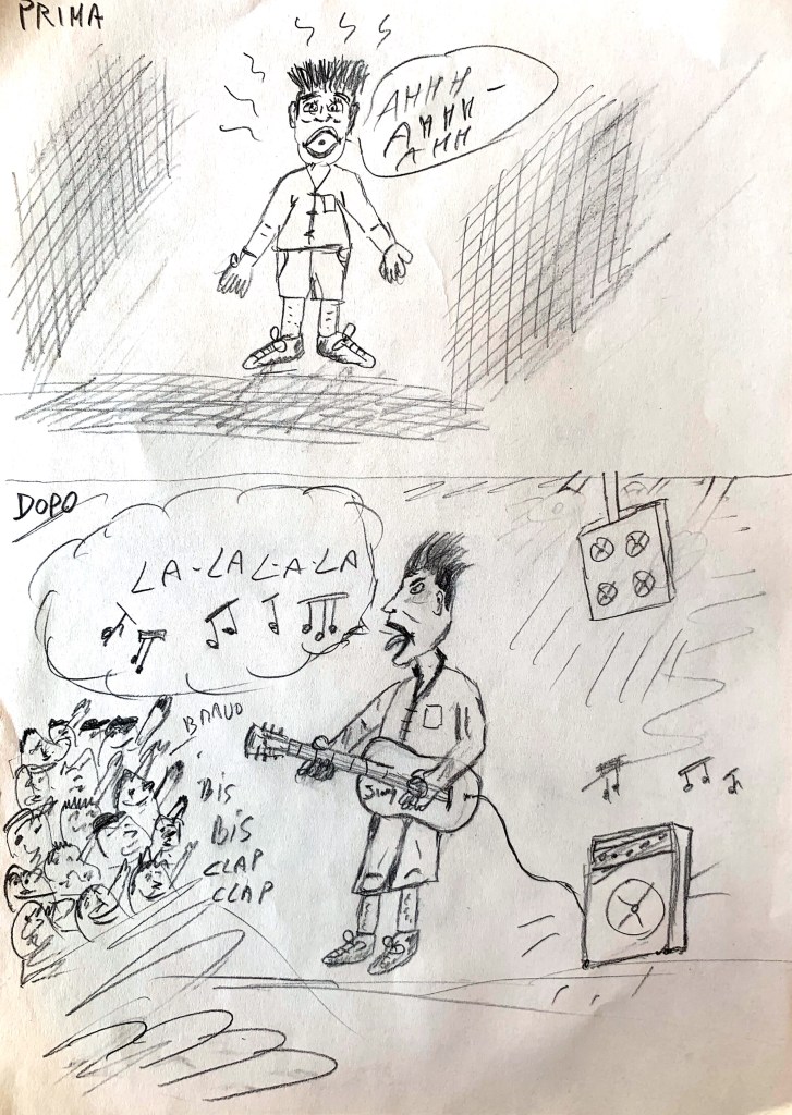 Così ci siamo dati un compito, scrivere parole in post-it gialli e verdi, alcune riguardanti i rumori che “abitano” il carcere e altre riguardanti oggetti, colori, personaggi da poter inserire dentro le storie che avremmo creato da lì a poco.