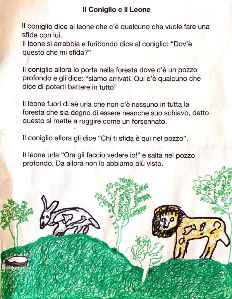 Ci siamo messi al lavoro scegliendo due post-it ciascuno e partendo da quel “binomio” per scrivere un racconto. Alcuni minuti per pensare a un titolo e poi tuffarsi dentro una piccola storia per l’infanzia.